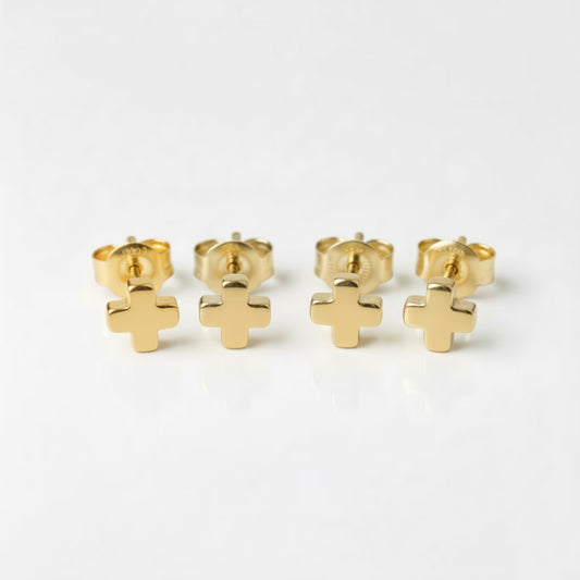 Altın Kaplama Cerrahi Çelik Kulak Delme Küpesi - Shape Cross Alerji Yapmayan (Çift)