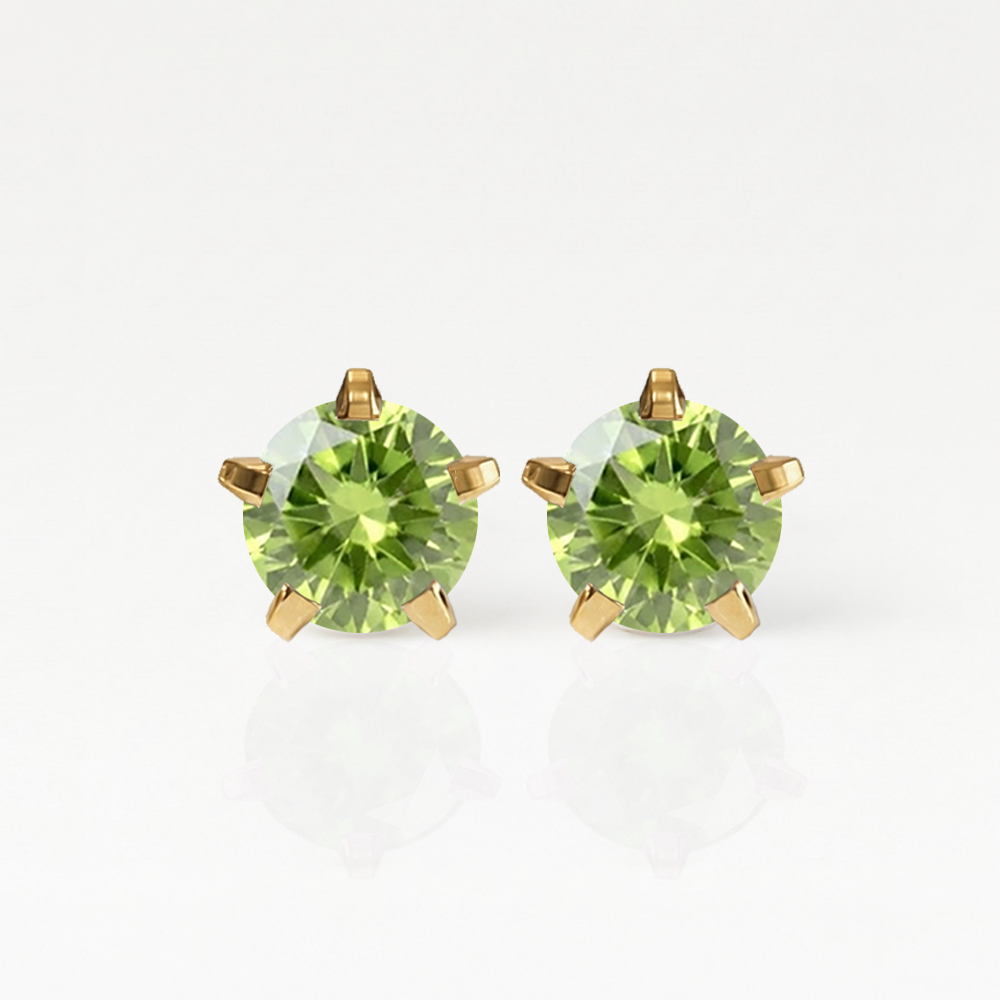 Altın Kaplama Cerrahi Çelik Kulak Delme Küpesi - Birthstar Peridot Alerji Yapmayan (Çift)