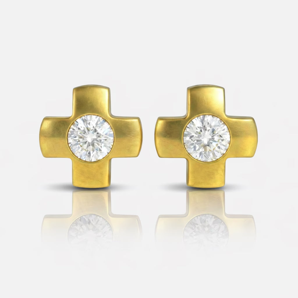Altın Kaplama Cerrahi Çelik Kulak Delme Küpesi - Crosslite Crystal Alerji Yapmayan (Çift)