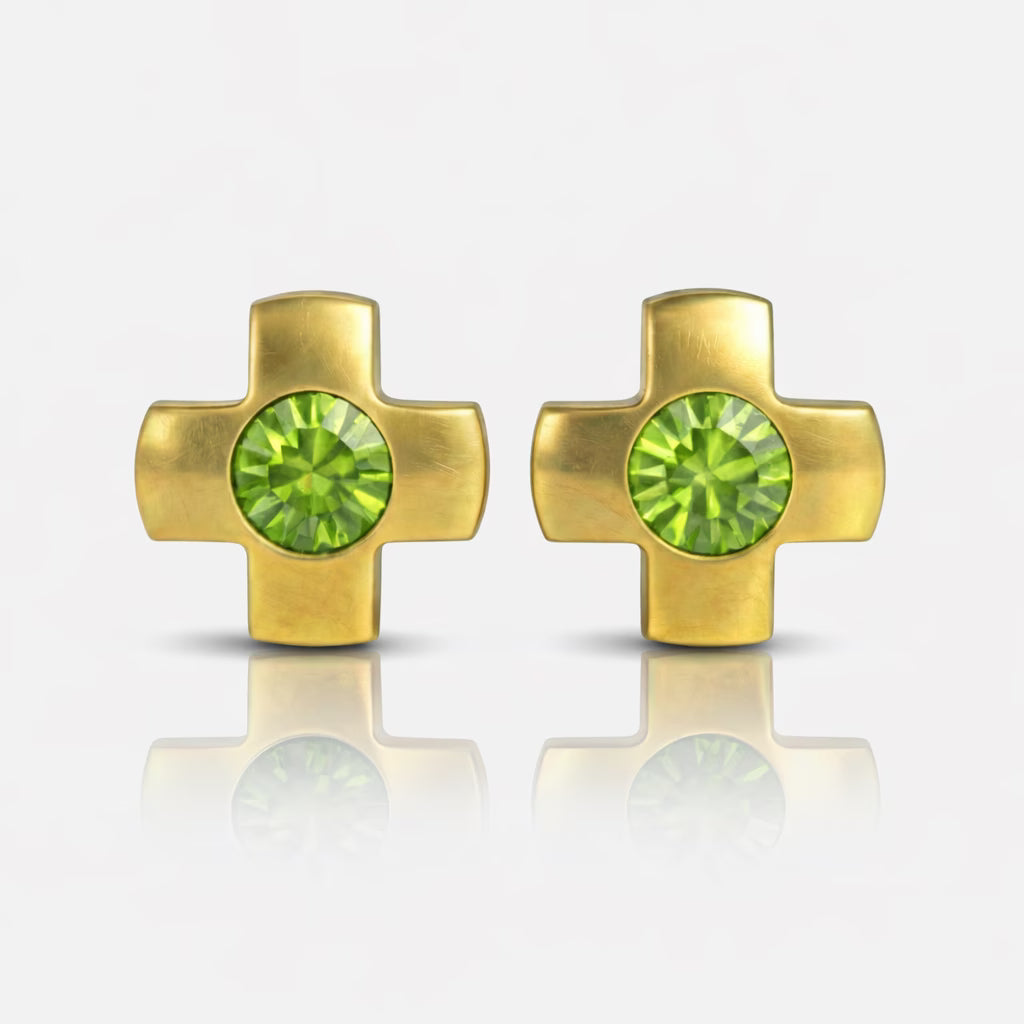 Altın Kaplama Cerrahi Çelik Kulak Delme Küpesi - Crosslite Peridot Alerji Yapmayan (Çift)