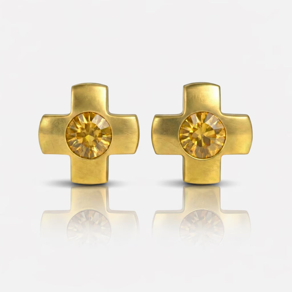 Altın Kaplama Cerrahi Çelik Kulak Delme Küpesi - Crosslite Topaz Alerji Yapmayan (Çift)