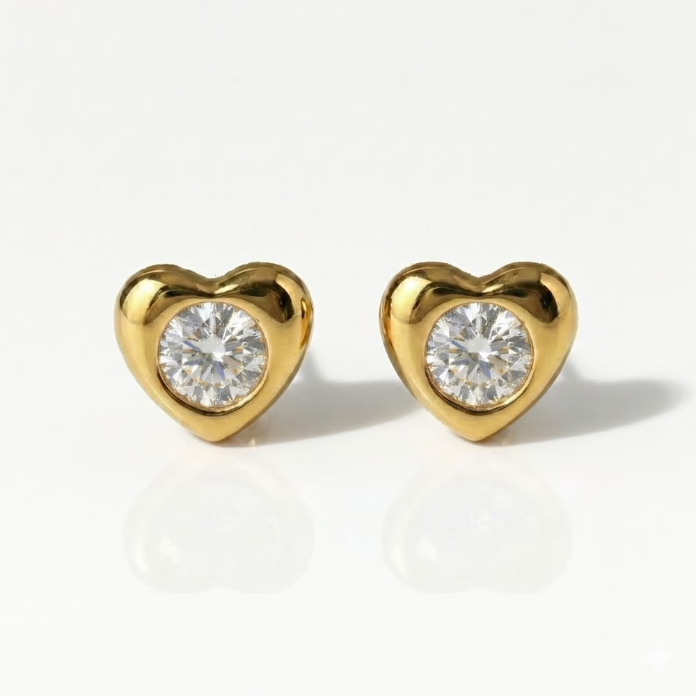 Altın Kaplama Cerrahi Çelik Kulak Delme Küpesi - Heartlite Crystal Alerji Yapmayan (Çift)