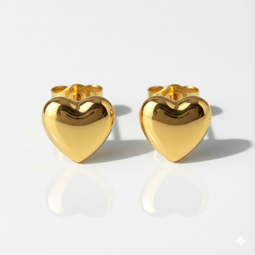 Cerrahi çelikten üretilmiş altın kaplama küpeler, zarif Heart şekilleriyle zamansız bir çekicilik sunar.
