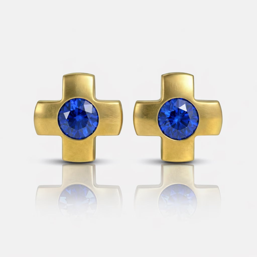 Altın Kaplama Cerrahi Çelik Kulak Delme Küpesi - Crosslite Sapphire Alerji Yapmayan (Çift)