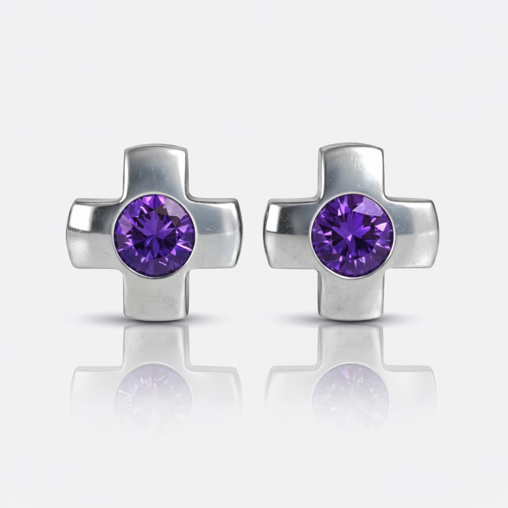 Cerrahi Çelik Kulak Delme Küpesi - Crosslite Ametist Alerji Yapmayan (Çift)