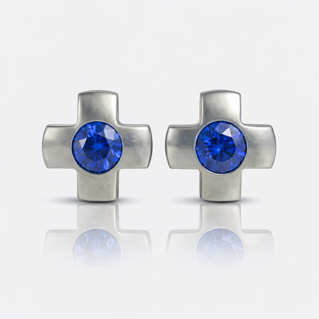 Cerrahi çelikten üretilen Crosslite Sapphire küpeler, alerji yapmayan güvenlik, derin mavi ışıltı ve uzun ömürlü dayanıklılık sunar.