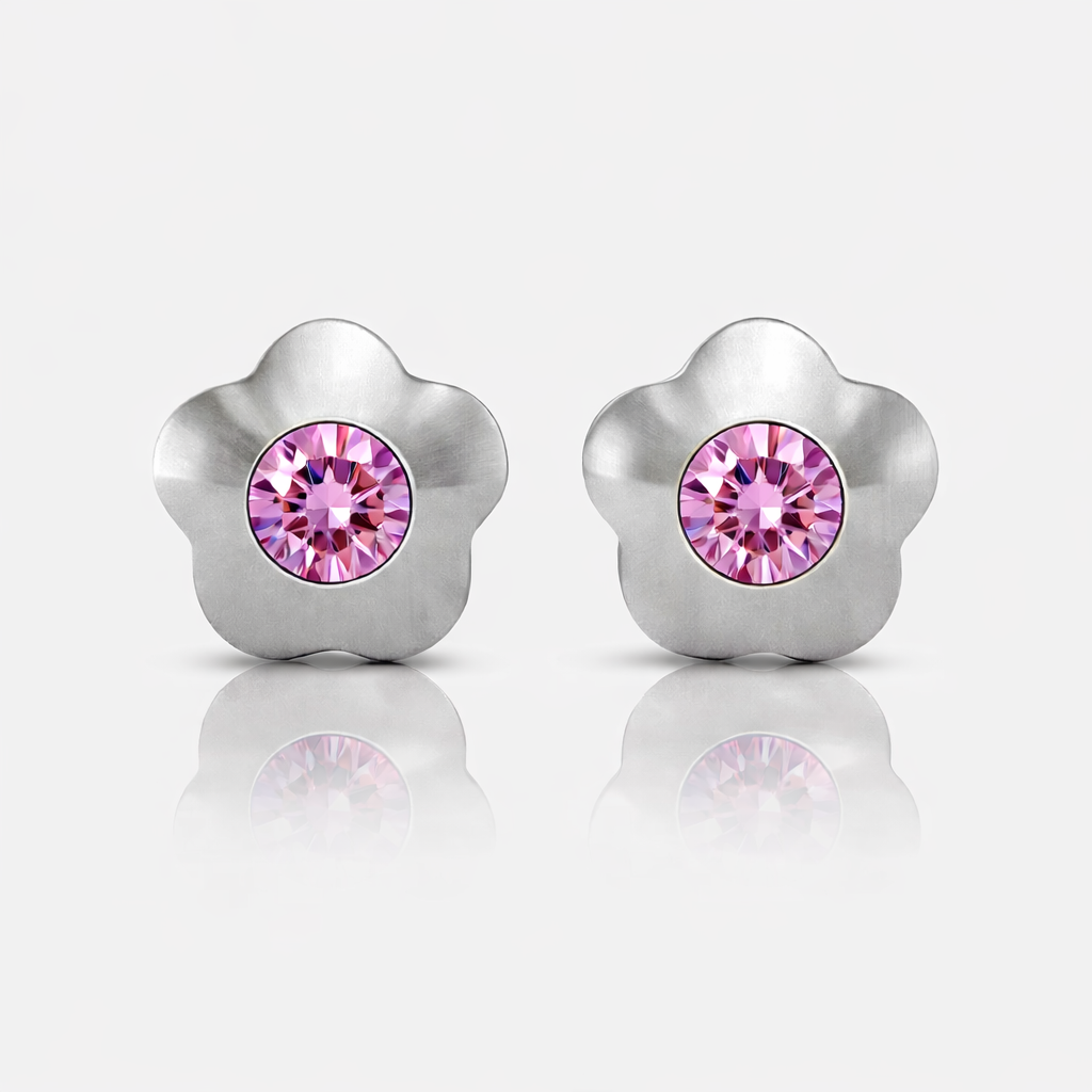 Dayanıklı cerrahi çelikten üretilen Flowerlite Rose küpeler, alerji yapmayan güvenlik, narin pembe ışıltı ve uzun süreli parlaklığı bir araya getirir.
